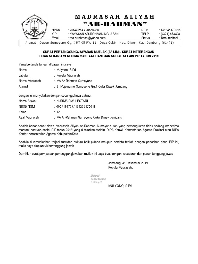 Surat keterangan wali untuk PIP merupakan dokumen penting bagi siswa yang tidak memiliki orang tua atau wali yang masih hidup. Dokumen ini menunjukkan bahwa siswa memiliki wali sah dan bertanggung jawab atas pendidikan dan kesejahteraan siswa. Untuk mendapatkan surat keterangan wali untuk PIP, siswa harus memenuhi beberapa syarat dan mengikuti prosedur yang telah ditetapkan oleh kantor Dinas Pendidikan setempat.
